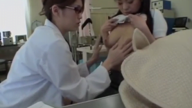 This Asian beauty comes to the gyno exam to check her sweet Asian pussy. The doctor is female. She starts checking her tits and pussy. Then she dildo fucks and fingers her. After that, she straps a dildo and starts fucking the beautiful Asian patient.