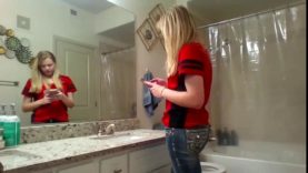 A beautiful teen girl with small tits shower spy porn. A hidden camera was installed in the bathroom to record her showering.